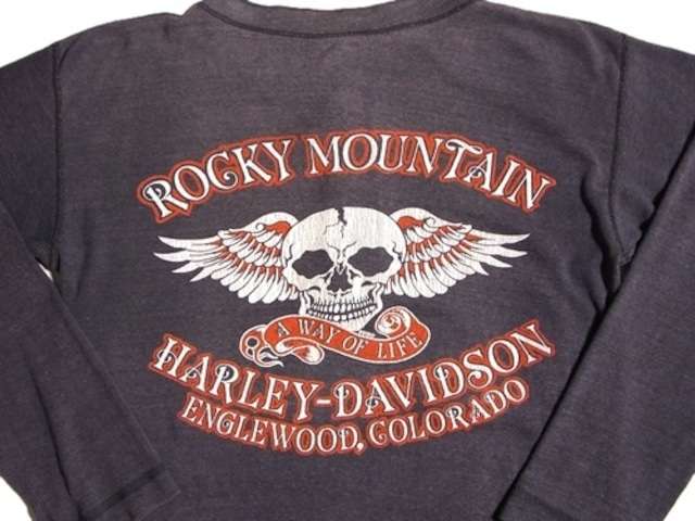 80's HARLEY DAVIDSON ハーレー ダビッドソン スカルウィング ヘンリーネック Tシャツ