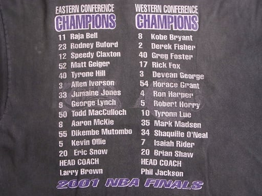 00's NBA FINAL 2001 76ERS VS LAKERS Tシャツ