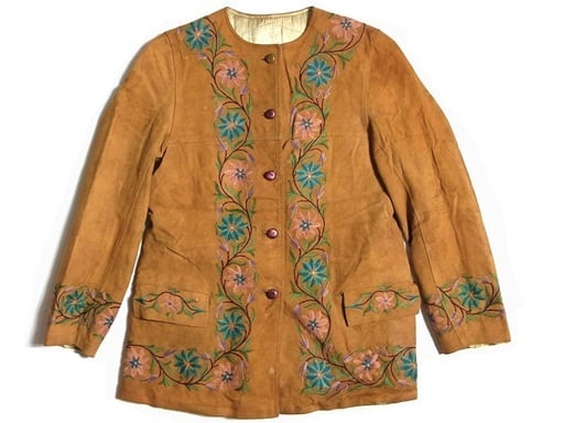 70年代の 刺繍 スウェード レザージャケットです。