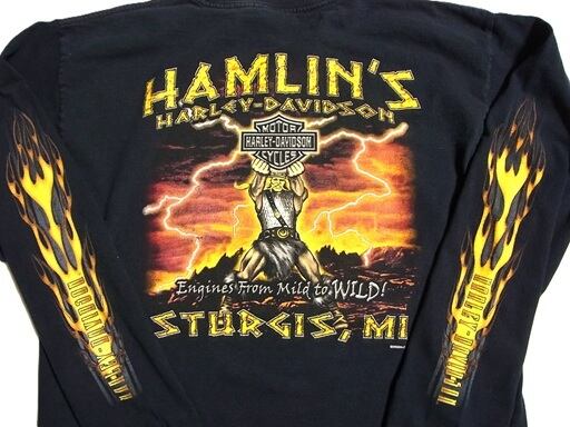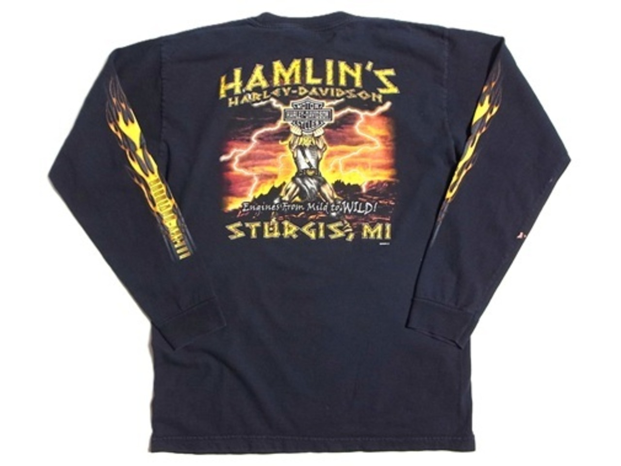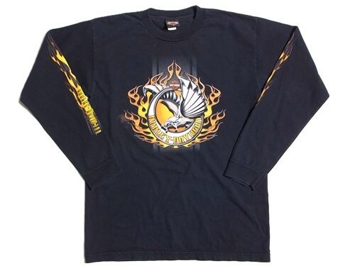 00's HARLEY DAVIDSON HAMLIN'S ハーレー ダビッドソン ファイヤーフレイム 長袖 Tシャツ