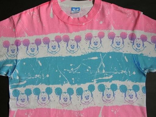80年代の Disney MICKEY MOUSE ディズニー ミッキーマウス マルチプリント ヴィンテージTシャツです。