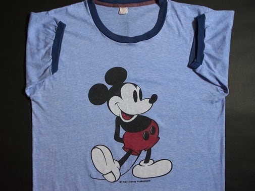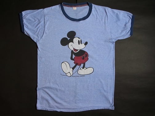 70's Disney MICKEY MOUSE ディズニー ミッキー マウス 染み込みプリント リンガー Tシャツ