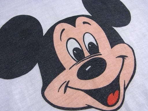 70's Disney MICKEY MOUSE ディズニー ミッキー マウス 染み込みプリント リンガーTシャツ