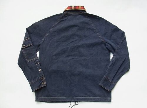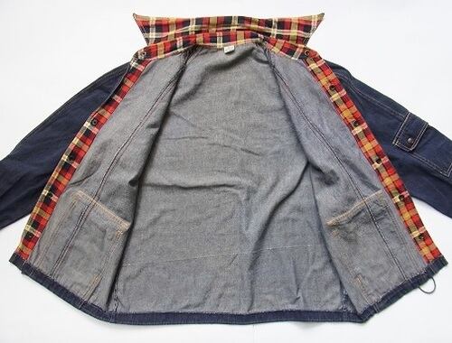 襟はネル素材のチェック、フロント下にポケット、左袖にポケット