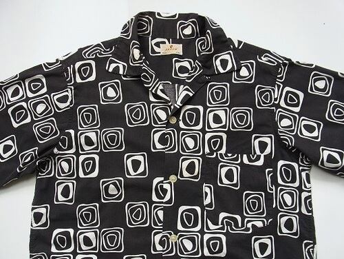 50's ARROW アトミック柄 黒ベース ヴィンテージ オープンカラーシャツ