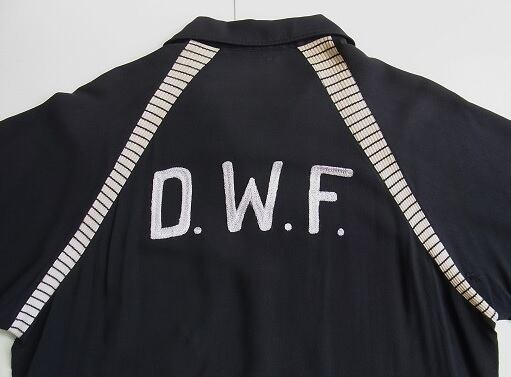 50's~60's Dunbrooke ヴィンテージ 黒 ブラック チェーンステッチ刺繡 レーヨン ボーリングシャツ