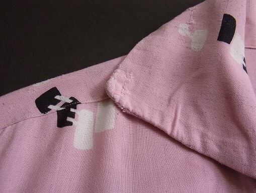 50's bud berma アトミック柄 ピンク × ブラック レーヨン ヴィンテージ オープンカラーシャツ