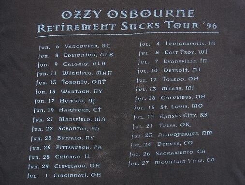 90's OZZY OSBOURNE RETIREMENT SUCKS TOUR '96 ヴィンテージTシャツ