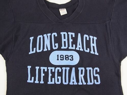 80年代の CHAMPION チャンピオン LONG BEAH LIFEGUARDS ヴィンテージ フットボール Tシャツです。