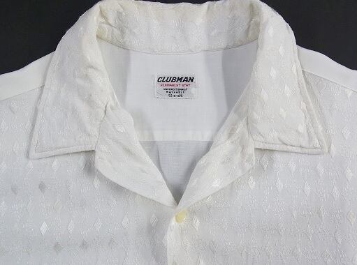 50's 60's CLUBMAN ダイヤ 織柄 ホワイト レーヨン ヴィンテージ オープンカラーシャツ