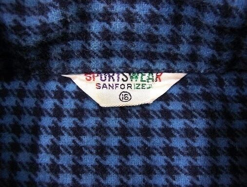 60's SPORTSWEAR 青 黒 千鳥格子 ヴィンテージ プリントネルシャツ