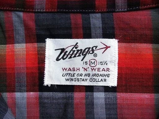 1960年代の Wings チェック ヴィンテージ オープンカラーシャツです。